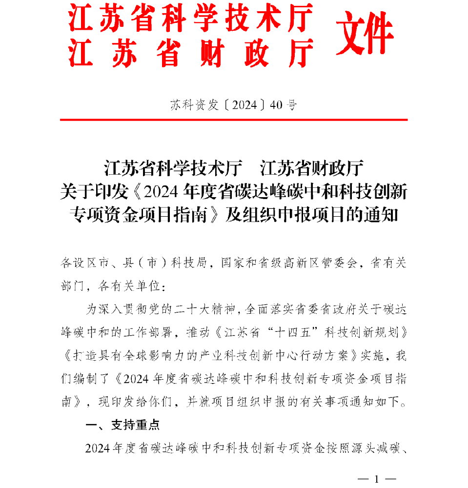 《2024年度省碳达峰碳中和科技创新专项资金项目指南》及组织申报项目【智为铭略转发】